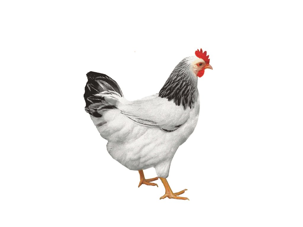 Odolná těžší černobíle kropenatá slepička s výbornou snáškou. Je velmi klidná.